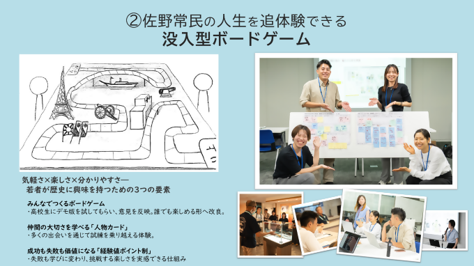 若者たちのアイデアにより、歴史館に関心を持ってもらうための「つねたミー診断」、体験を通して学びを深めるための「没入型ボードゲーム」を実装するための寄附になります。